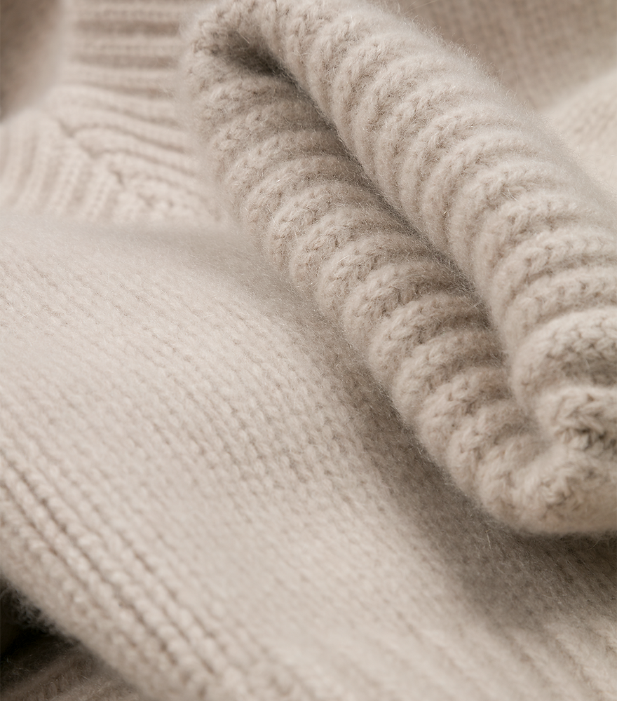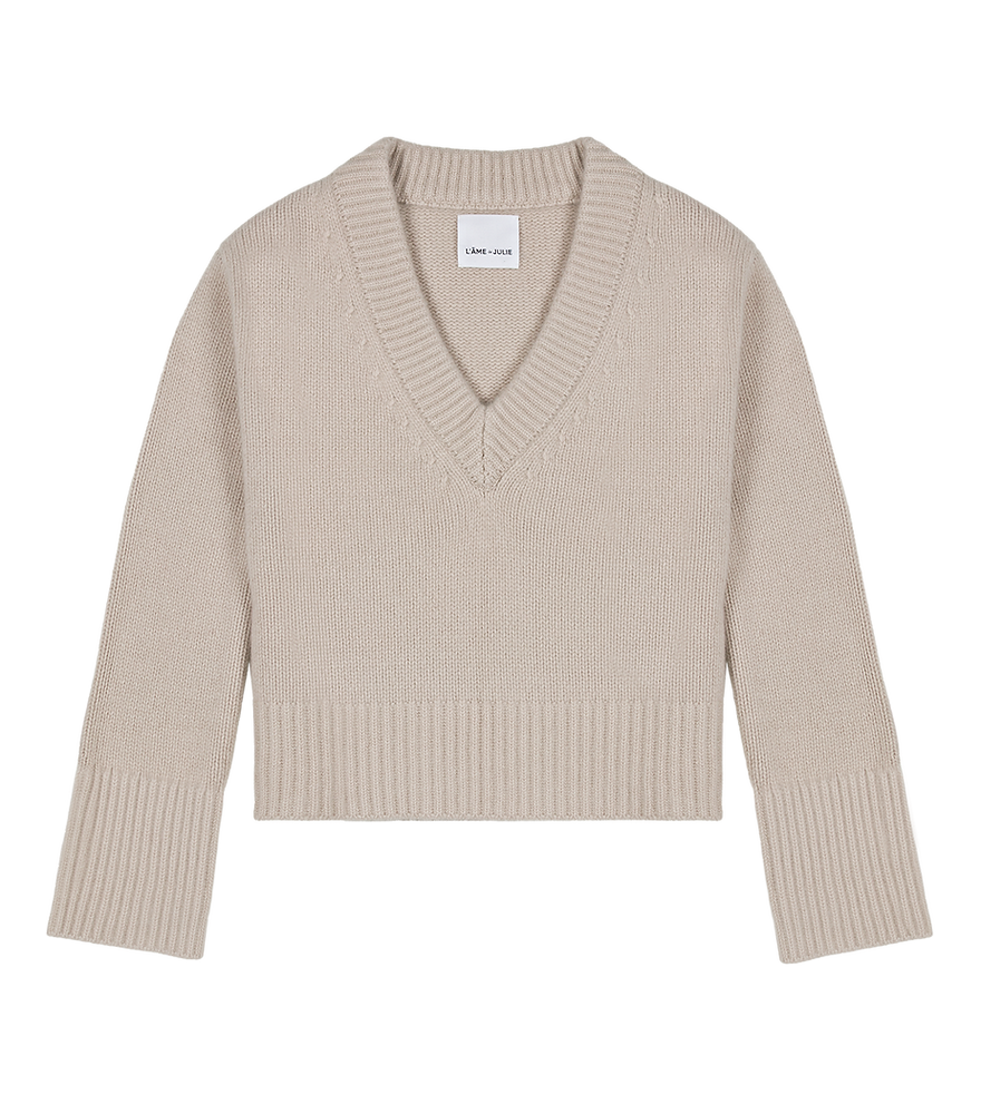 Een echte blikvanger van luxe, zwaar kasjmier. Met een diepe V-hals en extra lange, wijde mouwen is hij moeiteloos gedurfd, opvallend en supercomfortabel.
