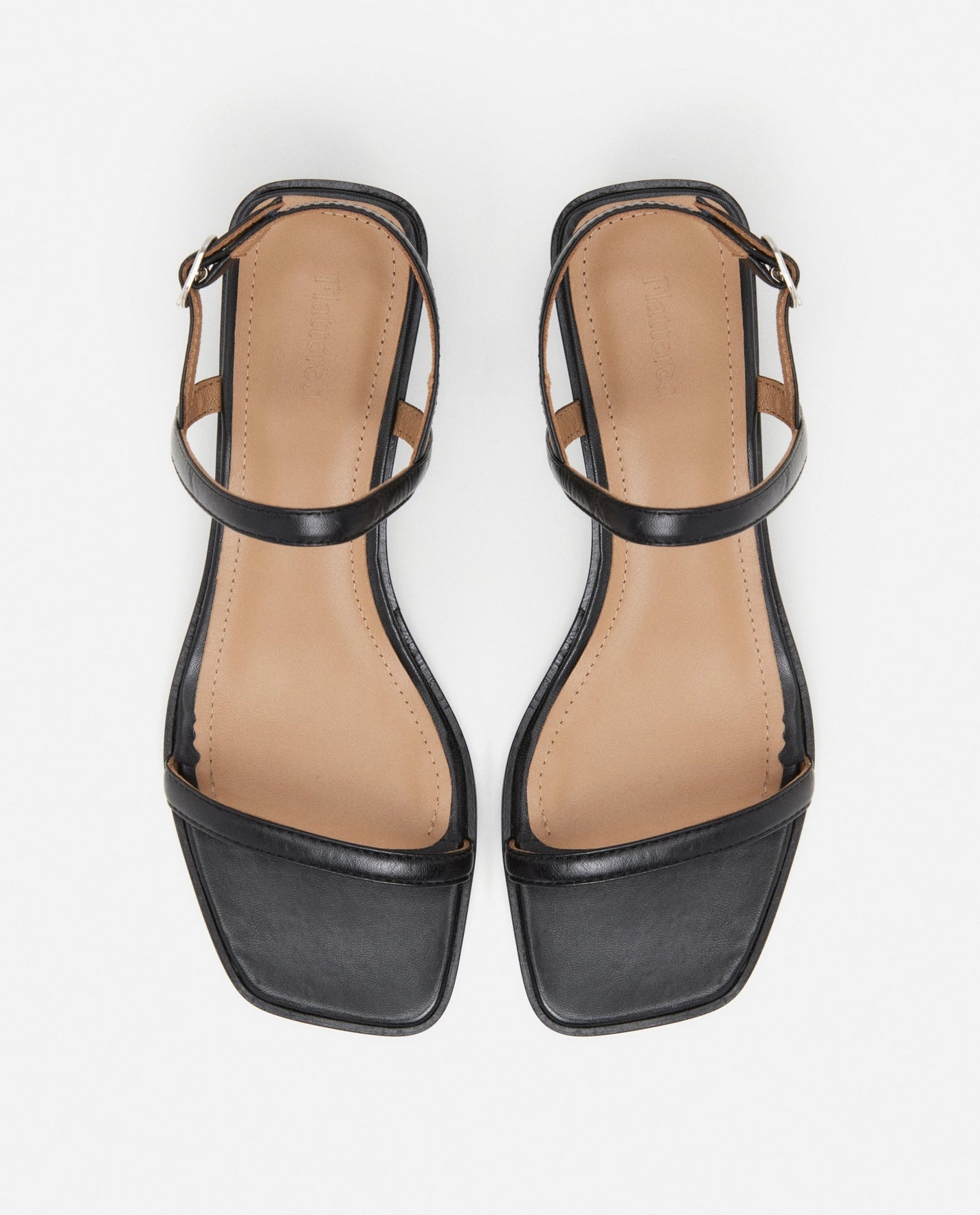 Leather open shoe with small block heel.